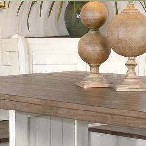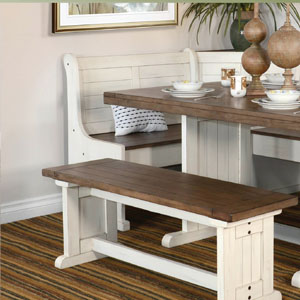 The Pasadena breakfast nook is beautifully crafted with mahogany solids and veneers. A two-tone Marble White and Buckskin finish accentuates its beauty. The versatility of the benches makes the set functional for any use.
