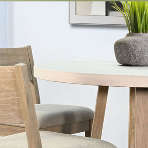 wire-brushed mindi solids and veneers. Its exquisite two-tone finish adds a touch of sophistication, making it an