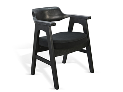 generous legroom, while the round silhouette encourages easy conversation. Crafted from wire-brushed mindi solids and veneers,