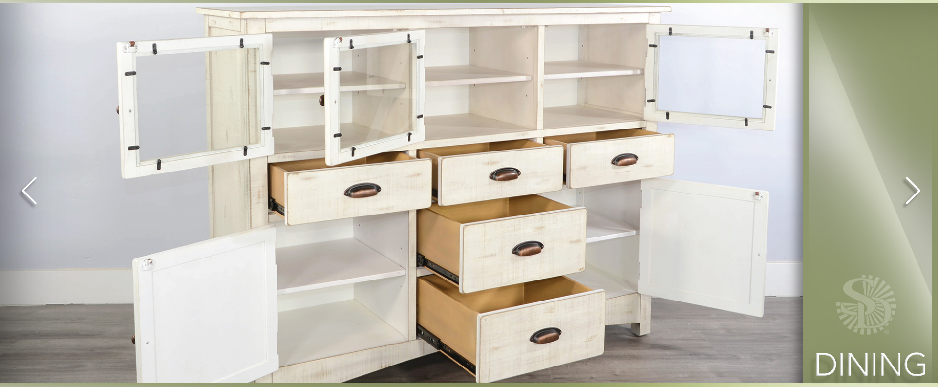 The Marina dining set was constructed with mahogany solids and veneers. The distressed metal turnbuckle accents on