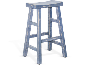 Ocean Blue 30"H Saddle Seat Stool Wood Seat