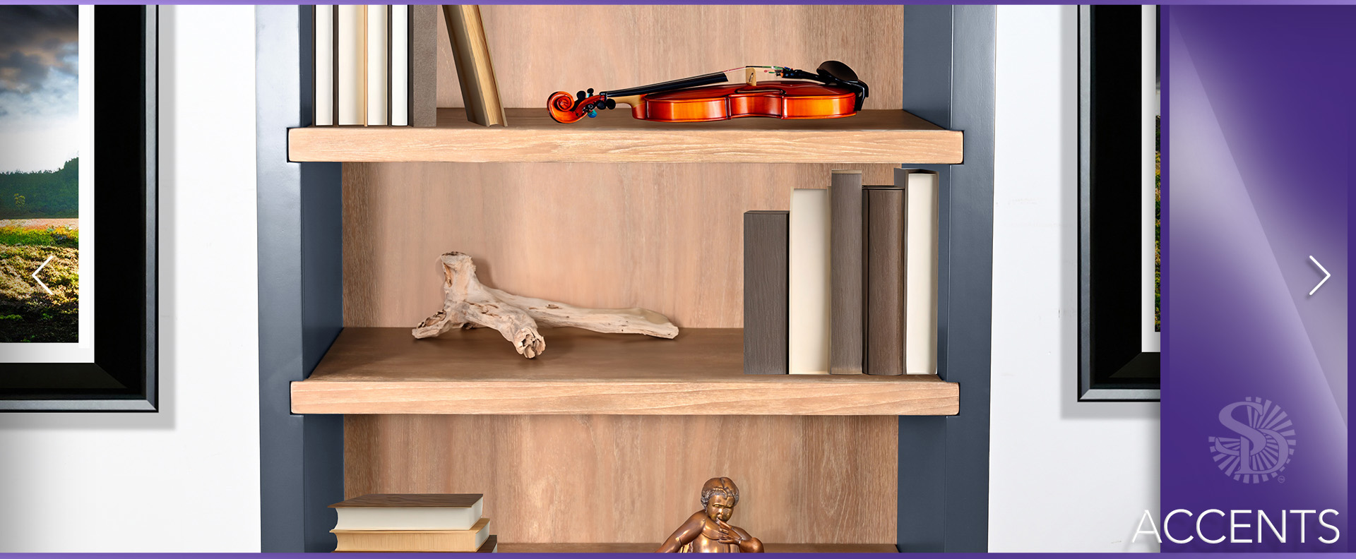 finishes, each with a beautiful contrasting Oakgrove background and shelves. These bookcases are a stylish addition to