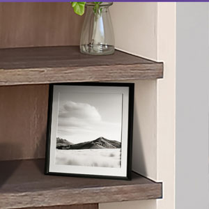 finishes, each with a beautiful contrasting Oakgrove background and shelves. These bookcases are a stylish addition to