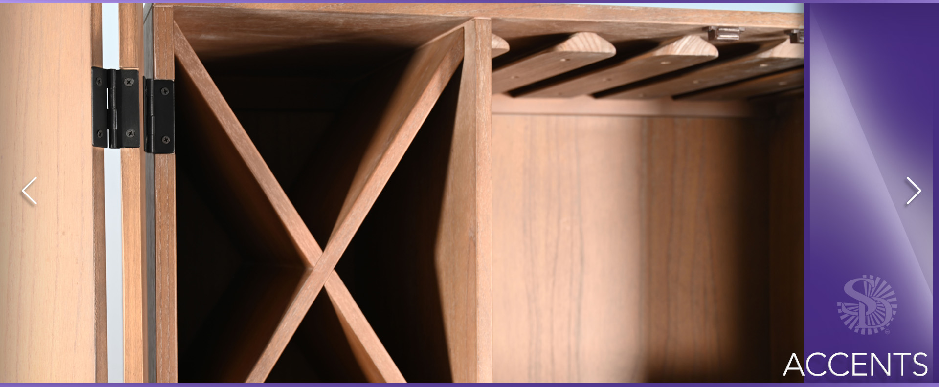 The Violet Wine Bar Cabinet is the perfect blend of functionality and style. Crafted from wire-brushed mindi solids and veneers, this elegant piece showcases a rich Oak Grove finish that enhances its natural beauty.