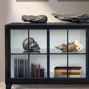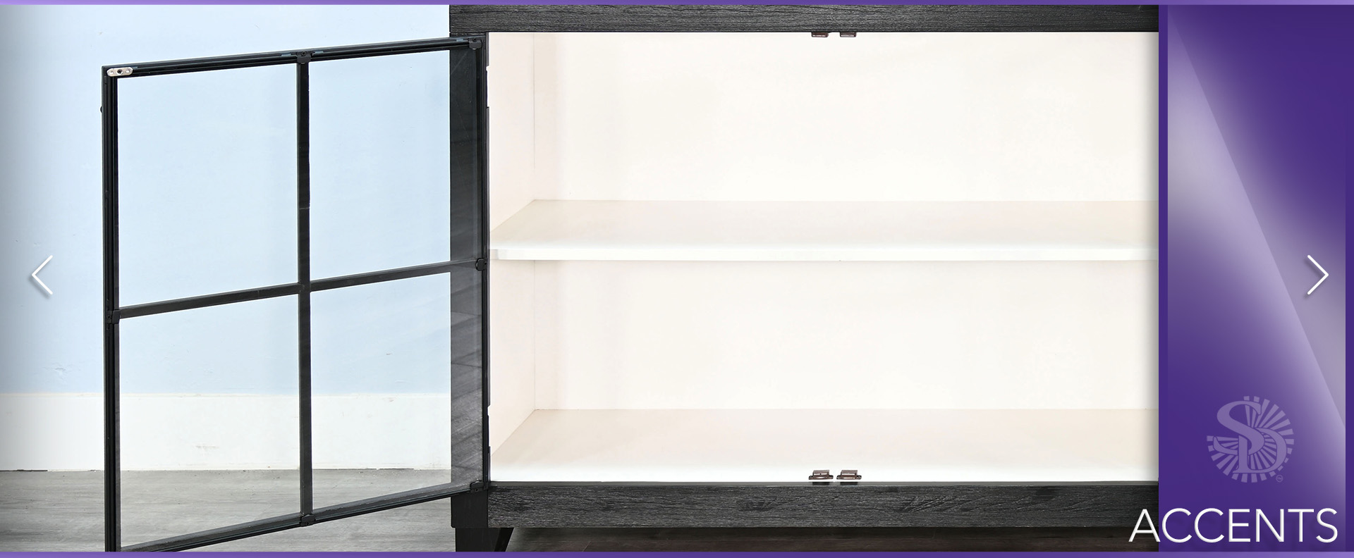 The Ryan industrial long accent cabinet boasts a modern elegance with its sleek design, making it a sophisticated
