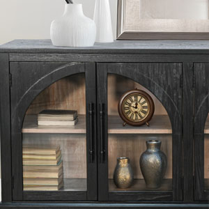 Timeless design meets versatile functionality with the Elena Cabinet. Crafted from wire-brushed mindi solids and veneers, this elegant piece features a sophisticated dual-tone Umbra and Oak Grove finish, adding depth and warmth to any space. Designed for adaptability, the adjustable shelf provides customizable storage for your essentials, whether you're organizing dinnerware, books, or décor. Proudly made in Indonesia, the Elena Small Cabinet is a perfect blend of style and practicality, making it a refined addition to any home.