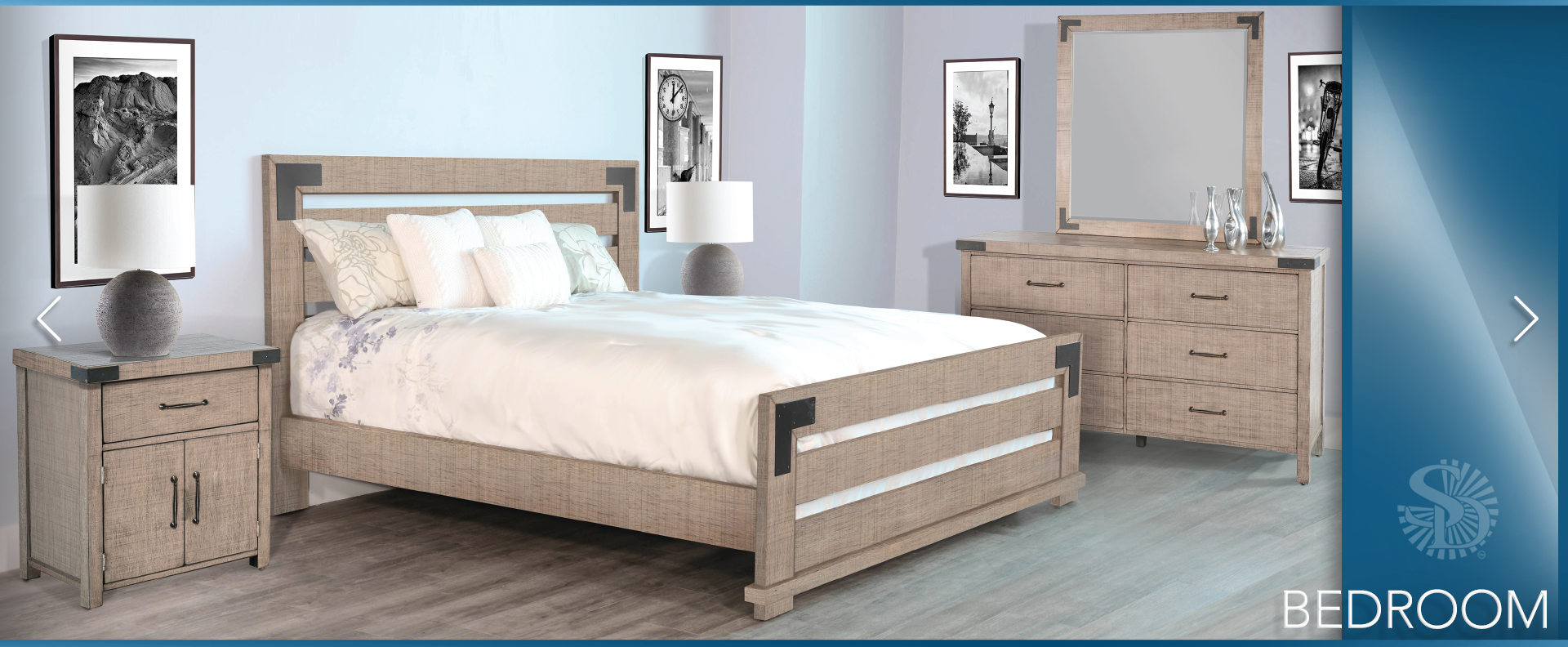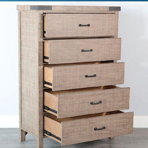 Blending the elements of contemporary design and rustic aesthetic, this bedroom set brings a unique look to any bedroom. The bed available in Eastern King and Queen size.