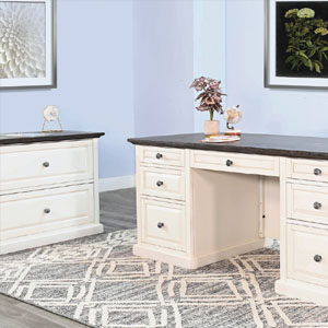 Ideal for any inspiring workspace, these pieces are a must-have. The desk features an elegant two-tone European Cottage