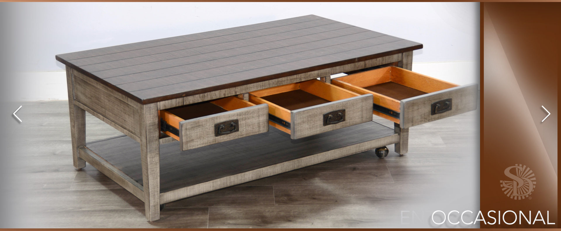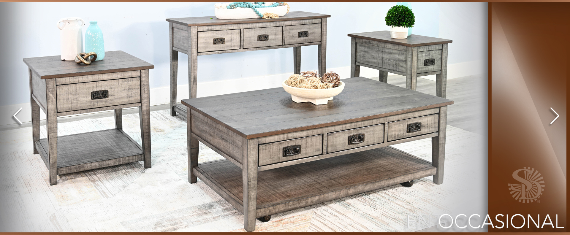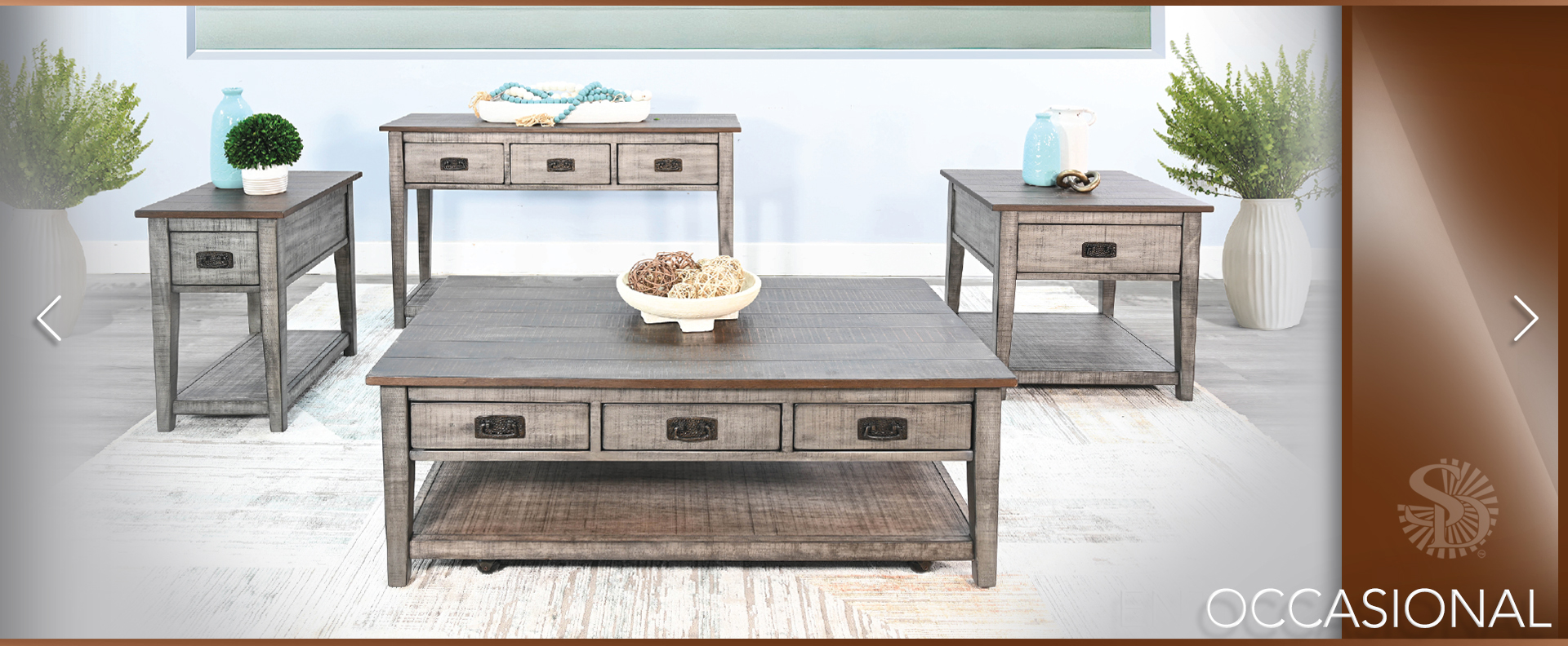 The Homestead Hills occasionals are constructed with mahogany solids and veneers. The two-tone finish draws attention
