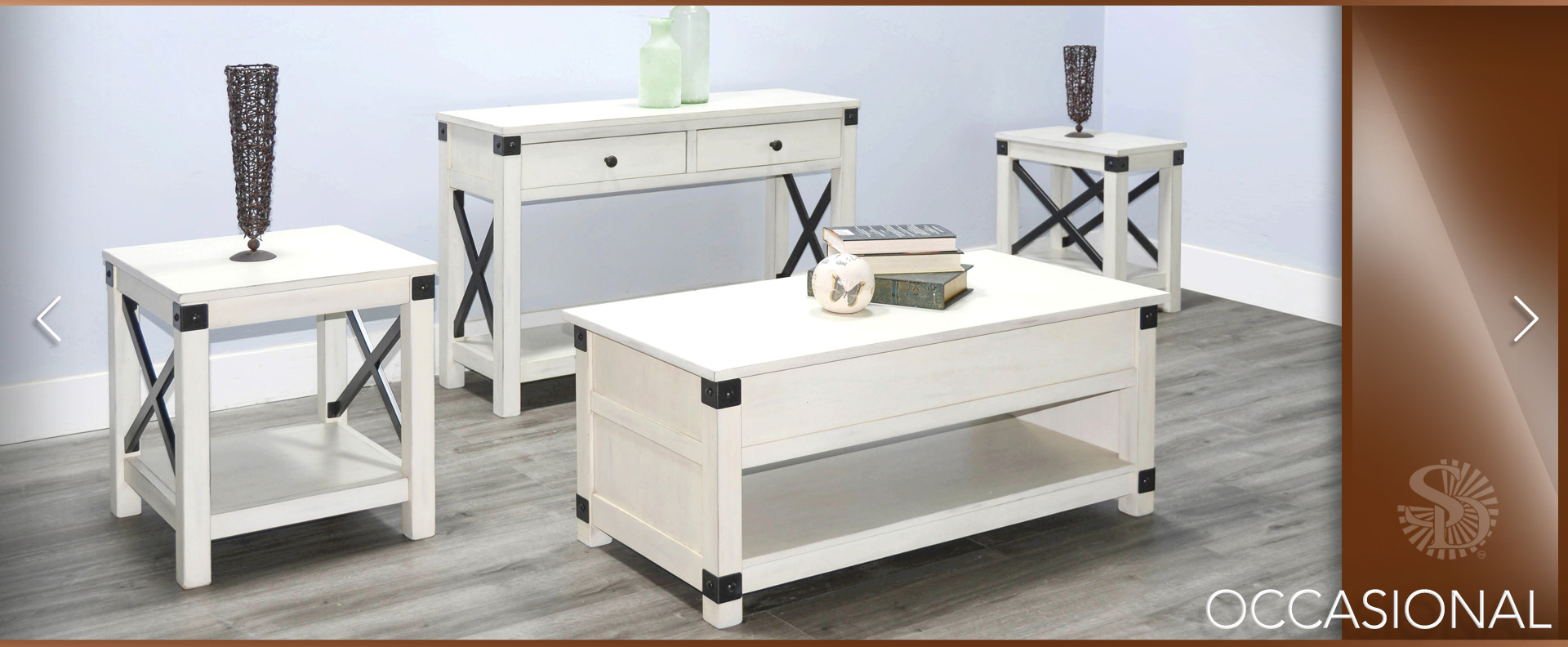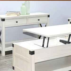 These occasional tables flow with a Marble White finish and unique black metal accents. The coffee tables lift top offers functionality for a casual, comfortable workspace. The bottom storage shelves are accessible from both sides.