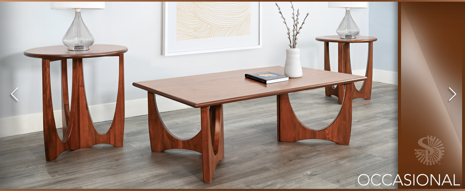 Add timeless sophistication to your living space with the Sinatra Occasional Table Set, a stunning trio of mid-century-inspired furniture. Crafted from mahogany solids and veneers, this set brings elegance and functionality to your home.