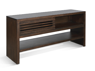These contemporary occasional tables offer semi hidden storage behind sliding doors and a lower display shelf. Built with mahogany solids and veneers and finished in a sophisticated Coffee Bean finish.