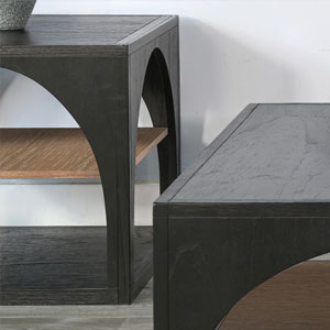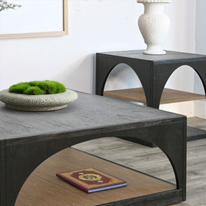 Enhance your living space with this sleek and modern Coffee Table Set, crafted from wire-brushed mindi solids and veneers. This versatile set includes two optional coffee tables with convenient casters, an end table, and a sofa table—offering both style and functionality. Finished in a striking UO combination of Umbra and Oak Grove, this collection adds warmth and sophistication to any room. Expertly made in Indonesia.