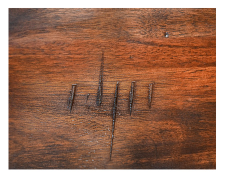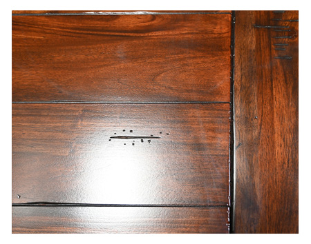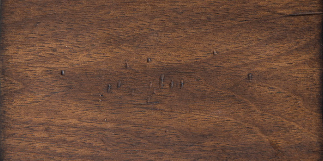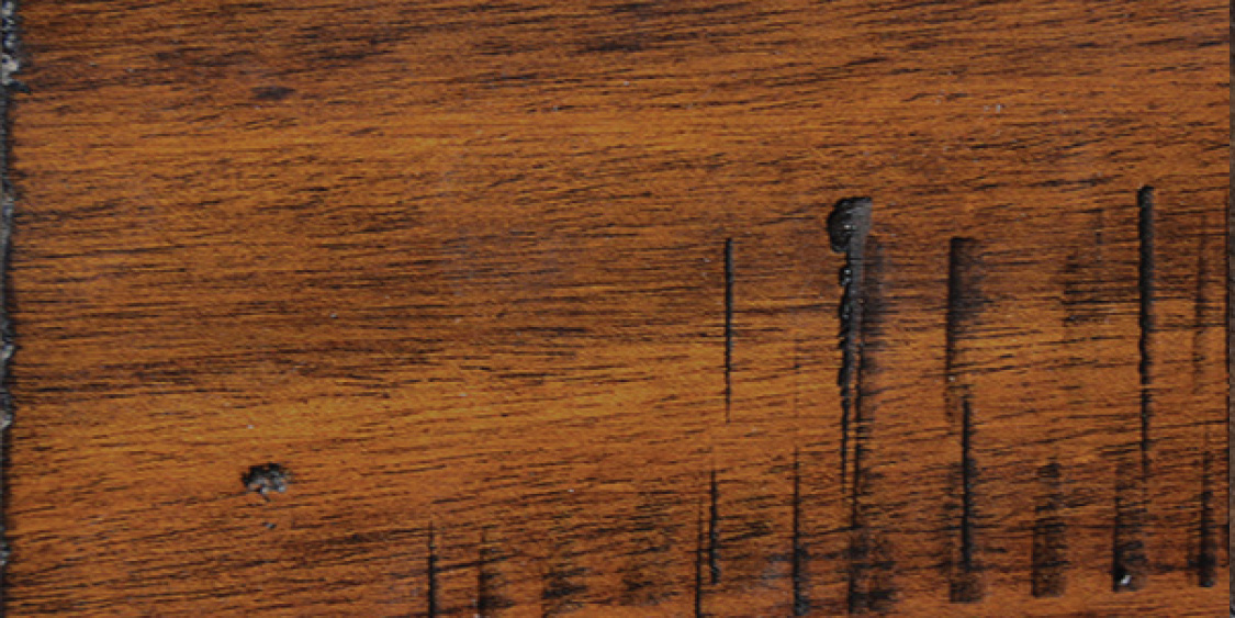 1D - Example VM finish with nail marks and worm holes present in plank panels |